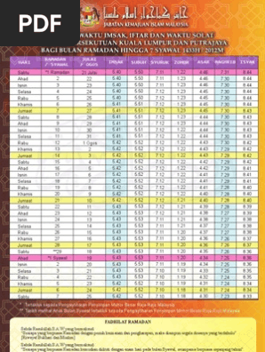 Taqwim Solat Ramadhan 1433h 2012 M Kawasan Kl Dan Putrajaya Pdf