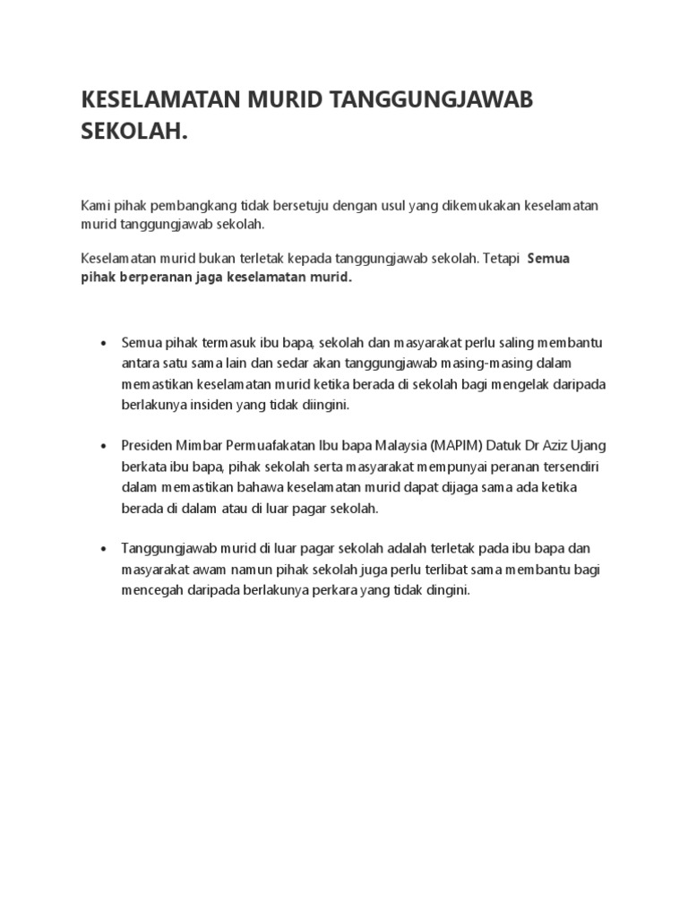 Keselamatan Murid Tanggungjawab Sekolah Pdf